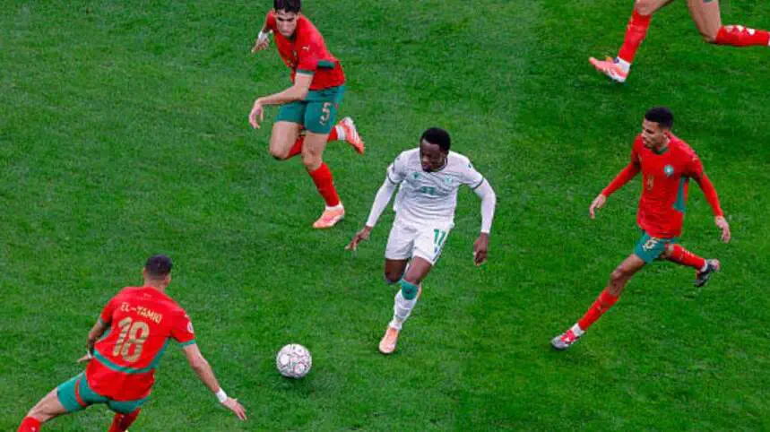 Le Maroc aurait pu prendre l’avantage plus tôt dans la rencontre, mais Soufiane Rahimi a manqué un penalty en début de match, repoussé par le portier comorien, très vigilant sur sa ligne.