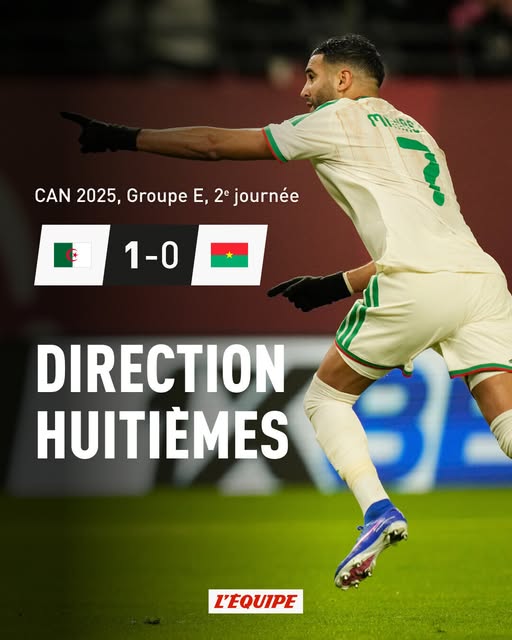 L’Algérie a composté son billet pour les huitièmes de finale de la CAN 2025 en s’imposant 1-0 face au Burkina Faso, le dimanche 28 décembre, au Stade Moulay El Hassan de Rabat, lors de la deuxième journée du groupe E.