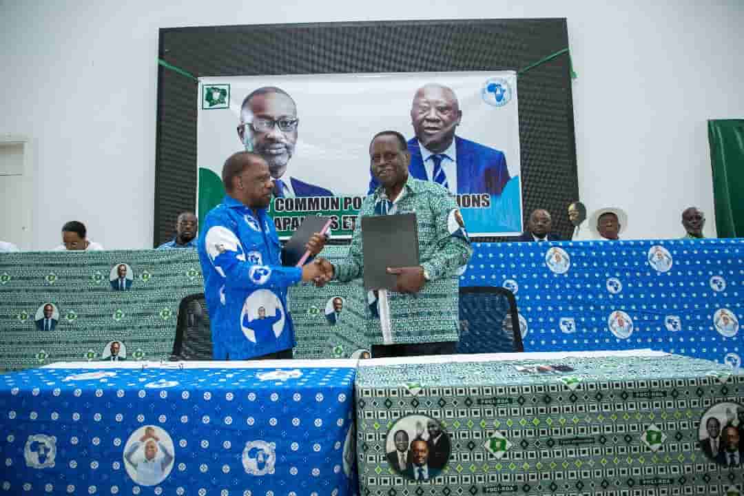A Cocody, précisément dans la cour du siège du PDCI-RDA, à Abidjan, l’ambiance est électrique, ce mercredi 16 juillet 2025. A l’intérieur de ce bâtiment aux murs blancs, les journalistes s’entassent derrière leurs caméras. Les micros sont braqués sur une même direction, et les militants brandissent des pancartes aux couleurs de deux partis. Notamment, le Parti des Peuples Africains-Côte d’Ivoire (PPA-CI) et le Parti Démocratique de Côte d’Ivoire (PDCI). Sur les visages, l’on observe que la rencontre est particulière. Que quelque chose d’inhabituel est sur le point de se produire, et tous en ont conscience.