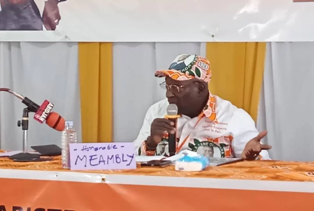 Mais c’est lorsqu’il a abordé la question du quatrième mandat d’Alassane Ouattara que l’ambiance a pris une autre tournure. D’un ton ferme, Méambly a lancé : « Nous disons NON au 4e mandat d’un seul homme ! » Il a accusé certains cadres du parti de se taire en public tout en fomentant des stratégies d’obstruction en privé. Une pique à peine voilée à l’endroit des ministres Mabri Toikeusse et Marcel Amon-Tanoh, qu’il qualifie d’« insurgés camouflés ».