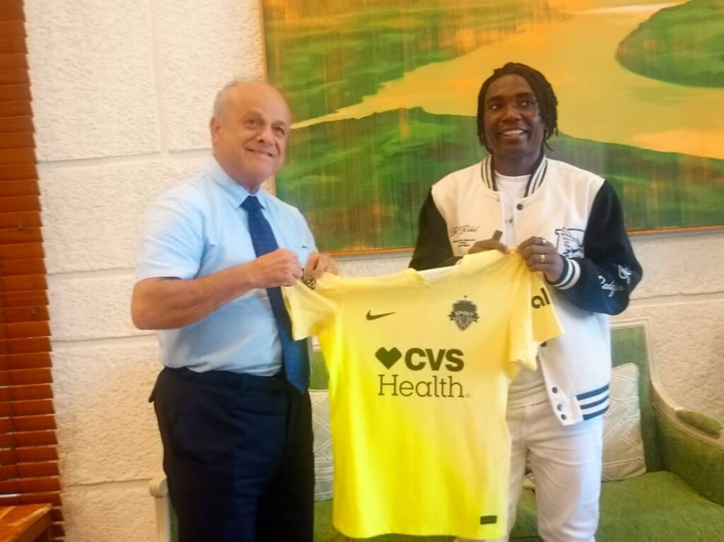 A travers un geste symbolique et expressif, la jeune Ivoirienne a remis le maillot jaune de Washington Spirit floqué de son nom à SEM Christophe Belliard, en vue de lui témoigner sa reconnaissance. C’était en présence du président de la FIF, Yacine Idriss Diallo, et de son vice-président Malick Tohé qui ont rehaussé de leur présence cette cérémonie teintée de sportivité.