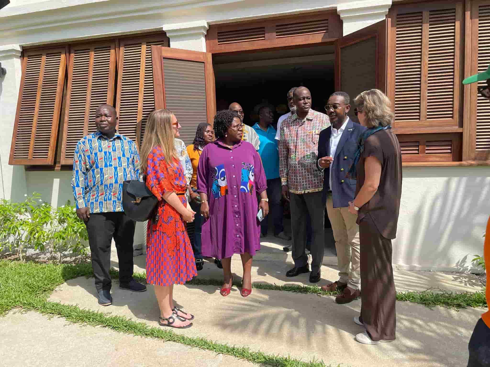 La délégation a ensuite parcouru plusieurs lieux emblématiques du patrimoine bassamois : l’ancien Palais de Justice, la Maison des Artistes Plasticiens, puis la Maison de l’Art contemporain, installée dans l’ex-hôtel des Postes et Douanes récemment restauré dans le cadre d’un partenariat associant le Ministère de la Culture et la Société Générale, conformément aux normes de l’UNESCO.