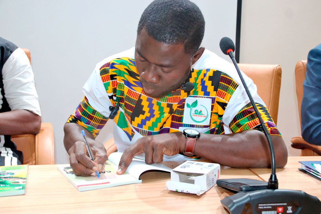 Présentant ses œuvres, le lauréat 2023 des Awards des entreprises, Jean Philippe Agoussi, a indiqué que les 3 ouvrages dont il est l’auteur sont le fruit de dix années de recherches. Celles-ci visent, a-t-il précisé, à élaborer des solutions devant contribuer à la formation des acteurs du secteur agricole sur l’agriculture écologique et les bonnes pratiques agricoles durables.