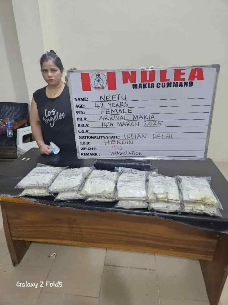 Ladite femme agée de 42 ans, s’appelle Neetu Neetu. Ele a été capturée à l’aéroport international Mallam Aminu Kano (MAKIA), dans l’État de Kano, au nord du pays. Selon l’agence antidrogue nigériane qui en a fait l’annonce, cette saisie de 11 kg fait partie d’une série d’opérations menées par la NDLEA, qui continue de lutter contre le trafic de drogues dans le pays.
