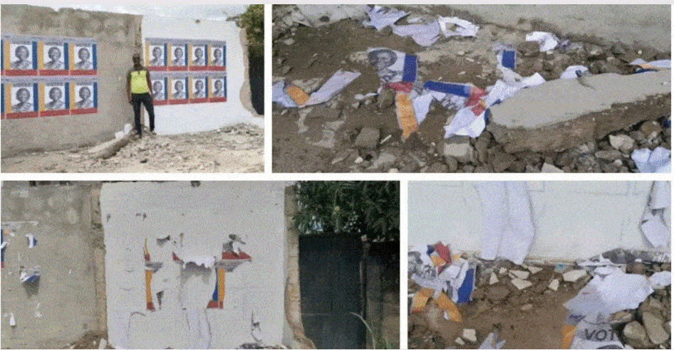 « J’ai passé toute la journée d’hier à coller méthodiquement les affiches, après avoir obtenu les autorisations nécessaires auprès des propriétaires des murs », explique M. Gningninri, visiblement affecté. « Ce matin, en faisant ma tournée, j’ai découvert une désolation totale : quasiment toutes les affiches avaient disparu ou été déchirées. »